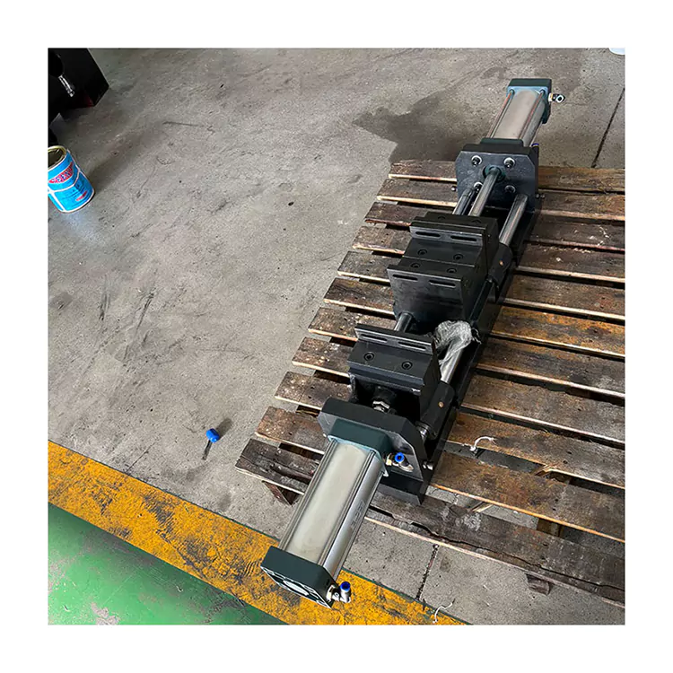 Solenoidový ventil riadi tento vzduchový valec, nastavuje maticu skrutkovej tyče tak, aby ovládala otvorenú veľkosť zveráka a vytvára uťahovanie a uvoľňovanie obrobku